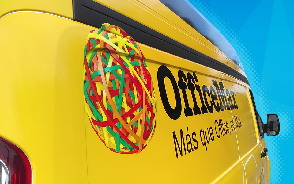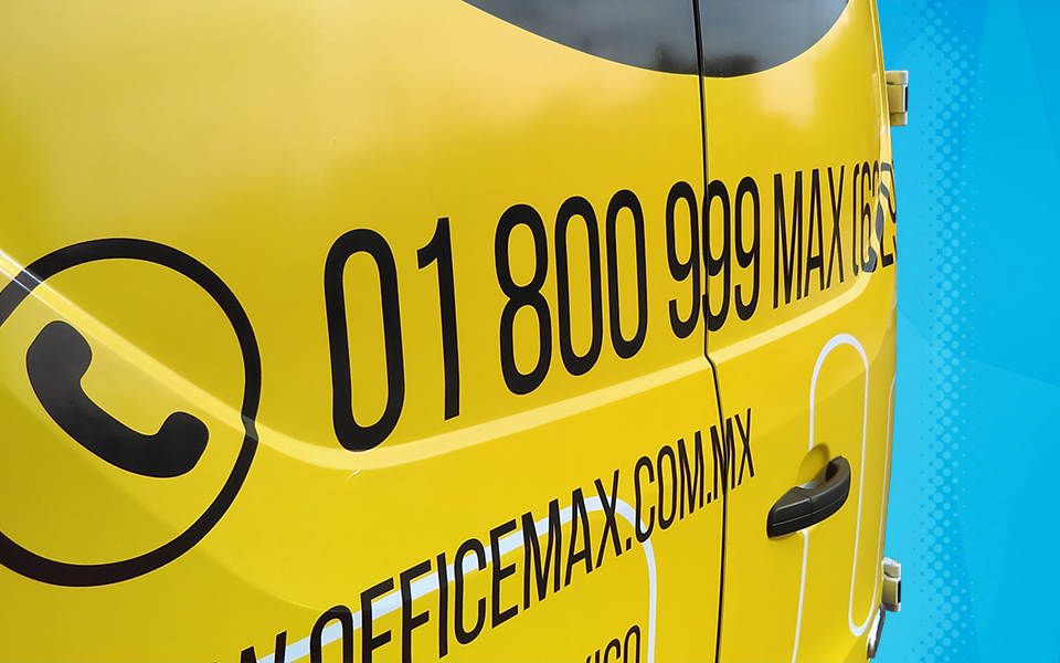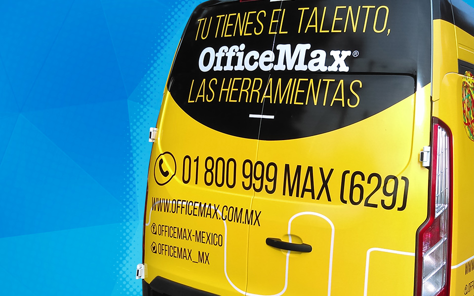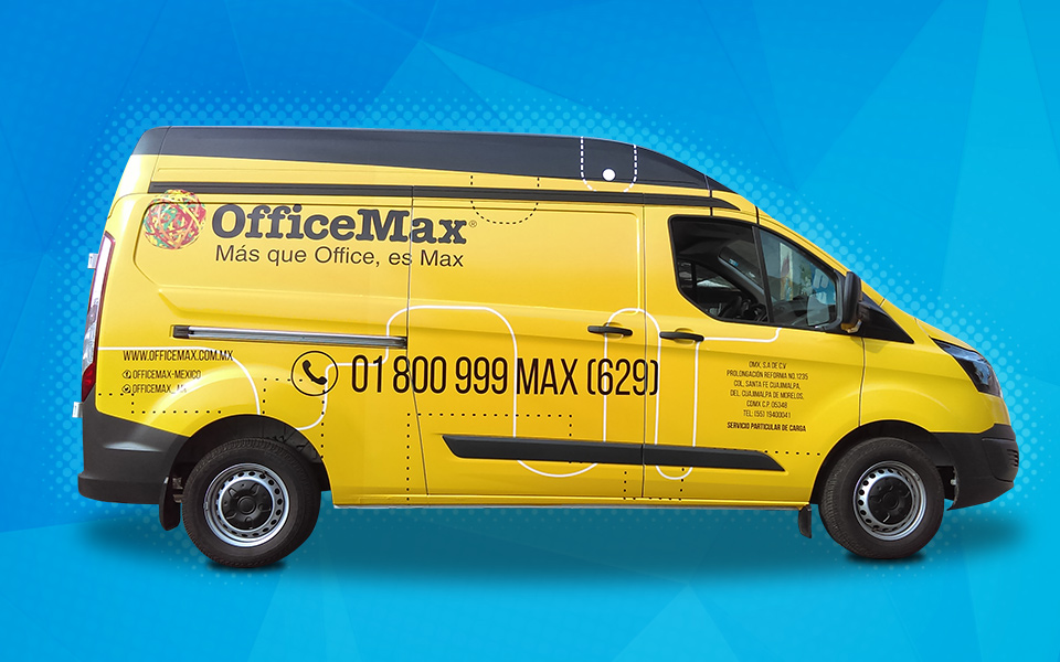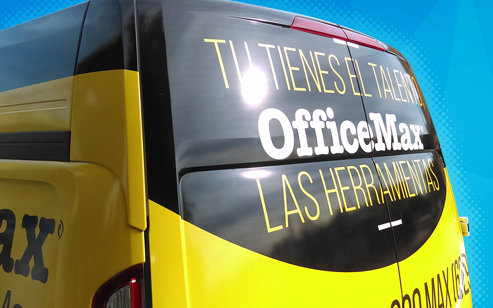 Impresión e instalación de vinil en alta en vehículos de empresa OfficeMax.