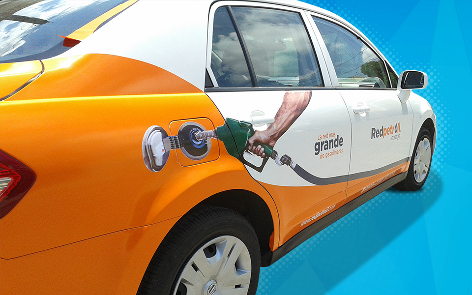Impresión e intalación de vinil a vehículo de empresa Redpetroil.